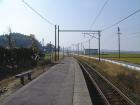 JR越後線の無人駅。列車は1日に10本程度。 背後には田園風景が広がる。 駅前には古めかしい倉庫以外はなにもない。